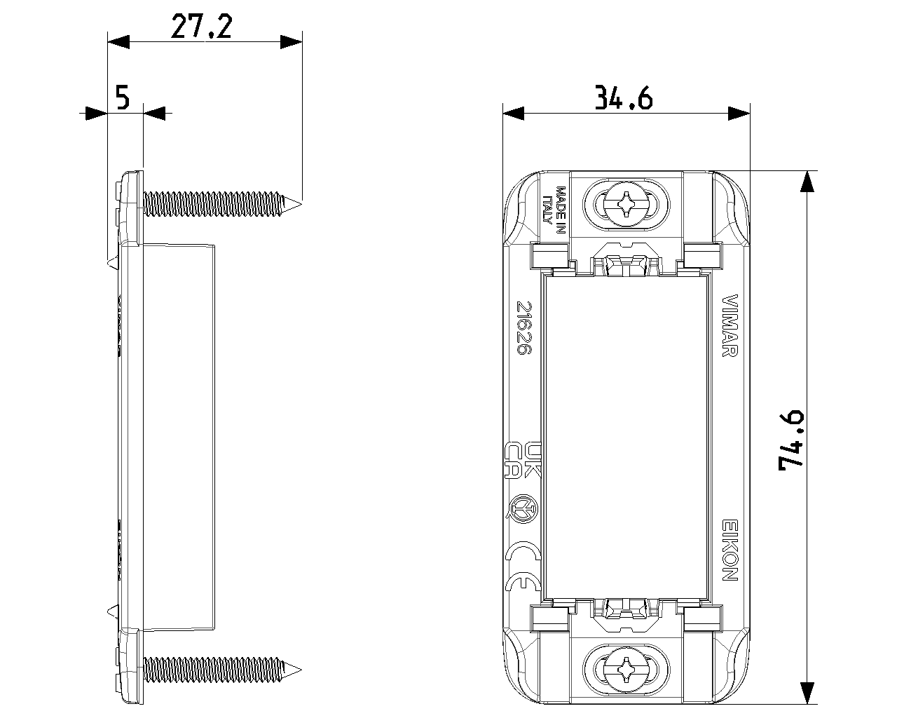 - Compatible avec la plaque de finition Eikon Chrome Classic Vimar