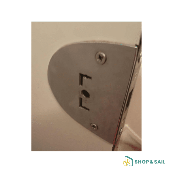 Cette serrure M/S Compact avec tôle de protection est une pièce d’origine installée sur les catamarans Fountaine Pajot, notamment le Bahia 46. Elle est conçue pour assurer la fermeture sécurisée des portes intérieures tout en offrant une bonne résistance à la corrosion marine.